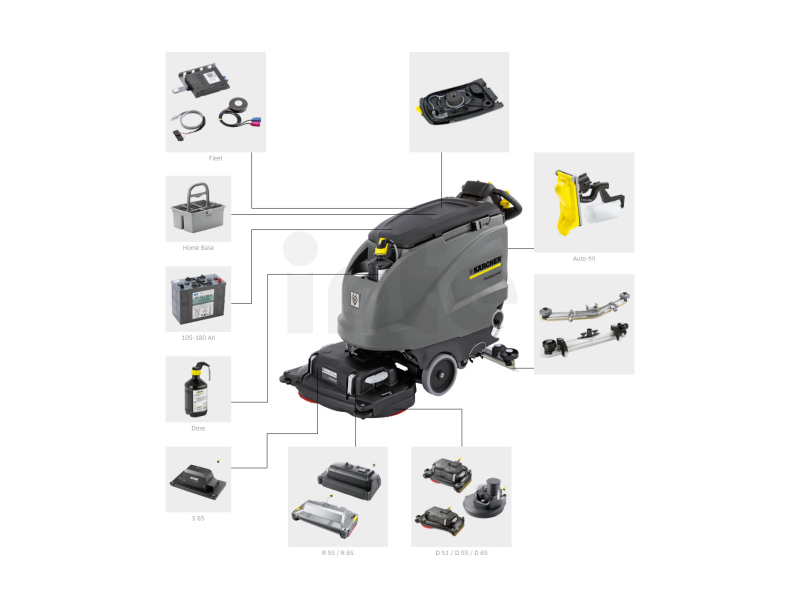 Nový inovovaný podlahový mycí stroj KÄRCHER B 60 W Bat Pack R 65 s velkou kapacitou nádrže, kompaktními rozměry a jednoduchou obsluhou pro snadné čištění na různých typech povrchů. Řada novinek by měla eliminovat možnost chybného provozu stroje a tím prodloužit jeho životnost.