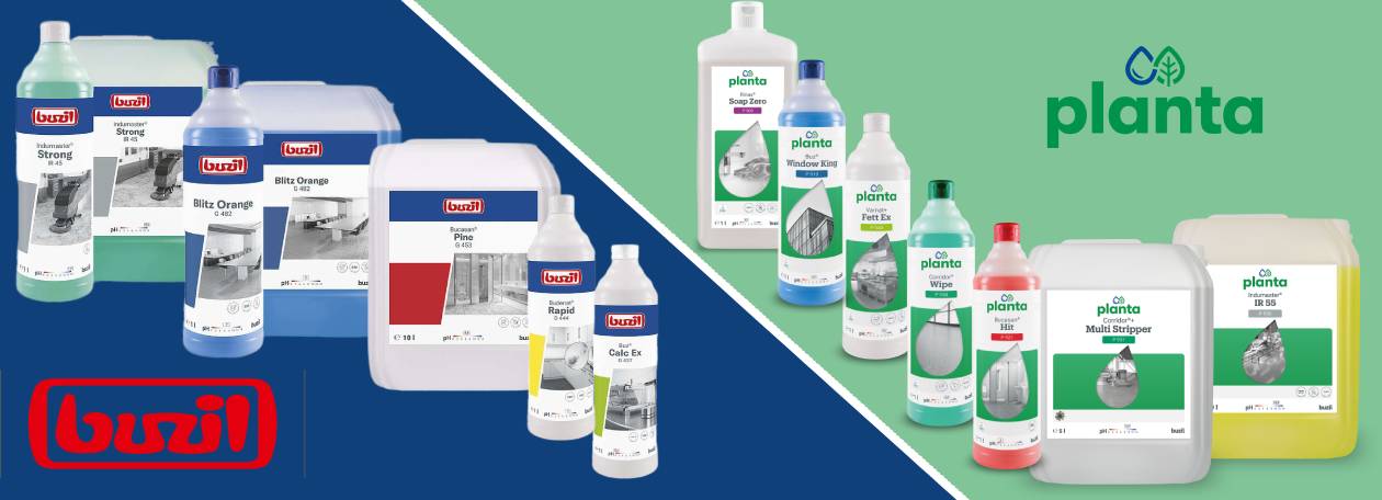 Značka Planta - ekologické recyklovatelné produkty od firmy Buzil. Táto značka obdržela platinové ocenění od Eco Vadis, což potvrzuje, že jejích výrobky chrání životní prostředí a zdraví. Ať už se podíváte na výkon čištění, uvědomíte si, že je možné dosáhnout cokoliv: vysoký lesk, rychlé sušení beze skvrn, bezproblémové rozpouštění vodního kamene, nebo hedvábný lesklý ochranný povlak.