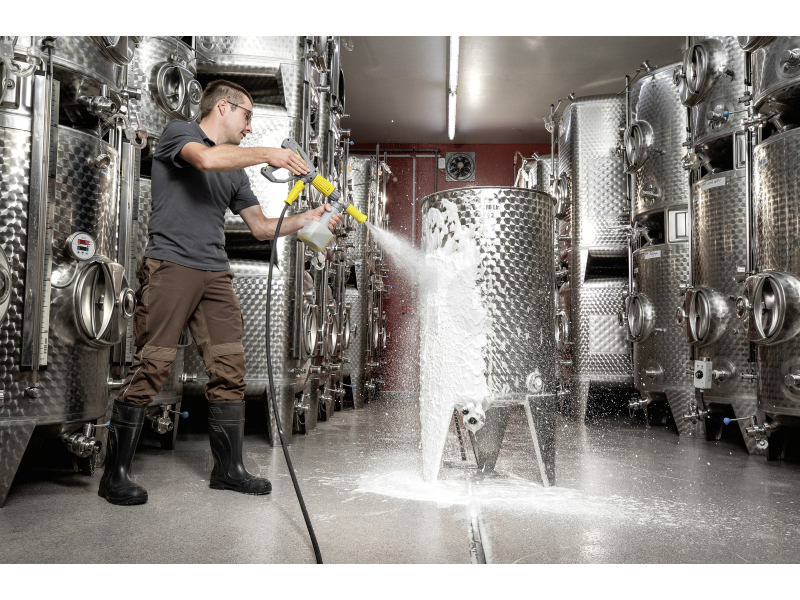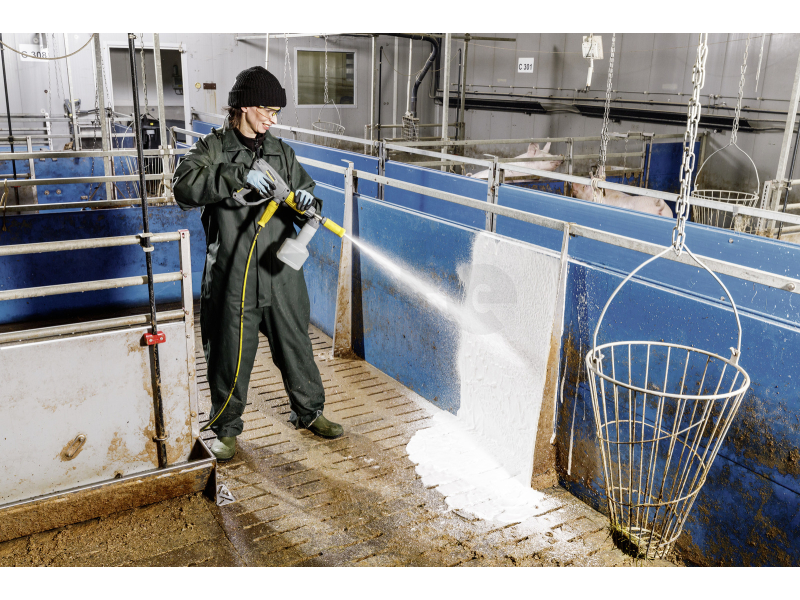 Tělo je vybaveno z robustního a odolného materiálu Ecobrass, který je vhodný i pro agresivní čistící prostředky. Nechybí ani ergonomická a stabilní nádoba na čisticí prostředky s přídavnou možností uchopení za hrdlo a velkým filtračním otvorem. Úhel rozstřiku lze flexibilně nastavit, přesné dávkování čisticího prostředku je realizováno ve 3 stupních přesně podle potřeby. Integrovaná klapka účinně zabraňuje neúmyslnému přestavení dávkovací jednotky čisticího prostředku. Pěnovací nástavec je vhodný pro vysokotlaké čističe Kärcher bez funkce servo a má průtok 400 až 600 l/h.