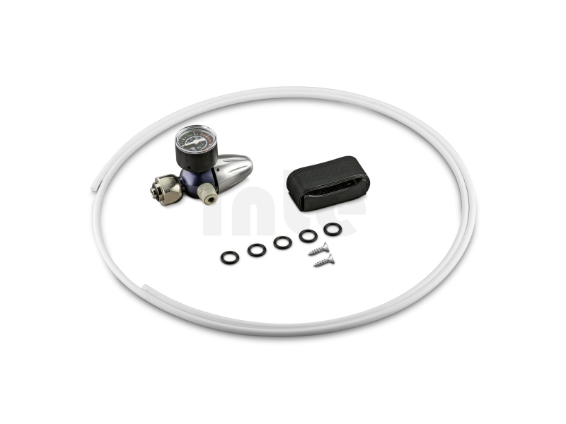 Reduktor tlaku CO2 pro připojení standardní 2 kg CO2 láhve k vodnímu dávkovači WPD 50WS. S nástěnnou montáží a spojovací hadic