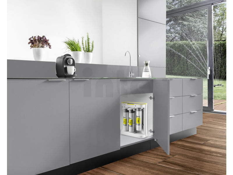 - Jednoduchá instalace a údržba - Rychlá výměna filtru díky bajonetovým uzávěrům a magnetickým upevněním krytu. Nekomplikované připojení na vodovodní potrubí. Adaptér a vodovodní kohoutek jsou součástí dodávky.