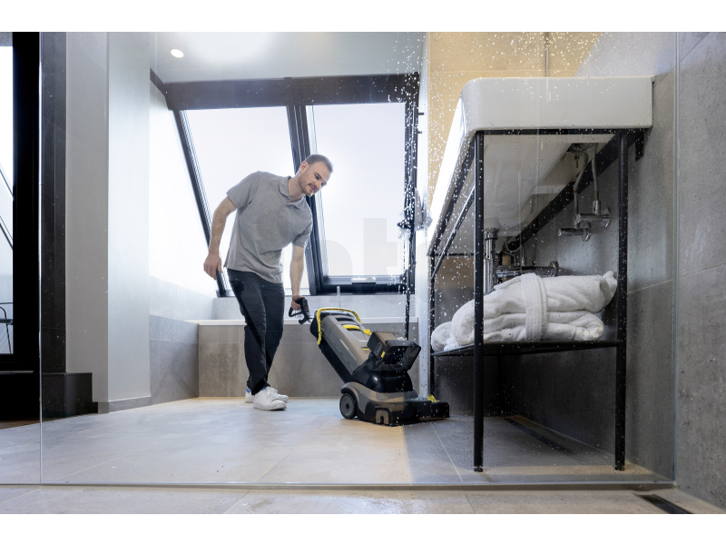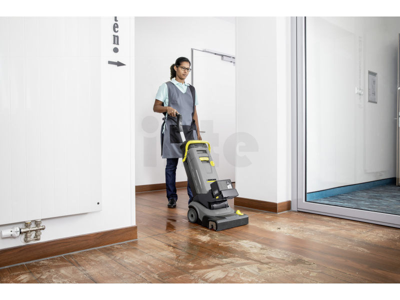 Akumulátorově poháněný mycí stroj BR 30/4 C Bp Pack je skutečnou alternativou k ručnímu čištění tvrdých povrchů až do 200 m² díky svému kompaktnímu tvaru, velmi nízké hmotnosti a jeho lithium-iontová baterii s dlouhou životností a 30minutovým provozem. Kontaktní tlak, který je desetkrát vyšší než u běžného stíracího mopu, a rychlost válce přibližně 1 500 otáček zajišťují výrazně lepší výsledky čištění. Je možné vysávat dopředu a dozadu. V případě obzvláště odolných nečistot lze stěrky zvednout, aby se prodloužila doba kontaktu čisticího roztoku. Okamžitě po čištění zůstane čistá a obzvláště suchá, a proto neklouzavá podlaha. Velmi mobilní, bezdrátový stroj je ideální pro čištění podlah v malých obchodech, restauracích, čerpacích stanicích, supermarketech, sanitárních zařízeních, kuchyních nebo dokonce vedle stávajících větších mycích strojů.