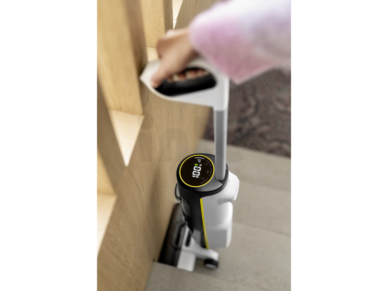 - Inteligentní automatický režim s čidlem znečištění Dynamic!Control automaticky přizpůsobuje sací výkon a množství vody stupni znečištění – pro maximální dobu provozu. Důležité informace, jako je zbývající doba provozu nebo režim čištění, jsou vždy zobrazeny na velkém 3,2palcovém displeji Vision!Clean. Inteligentní indikace hladiny v nádrži s ochranou proti přetečení a automatickým vypnutím, pokud není nádrž na špinavou vodu vyprázdněna.