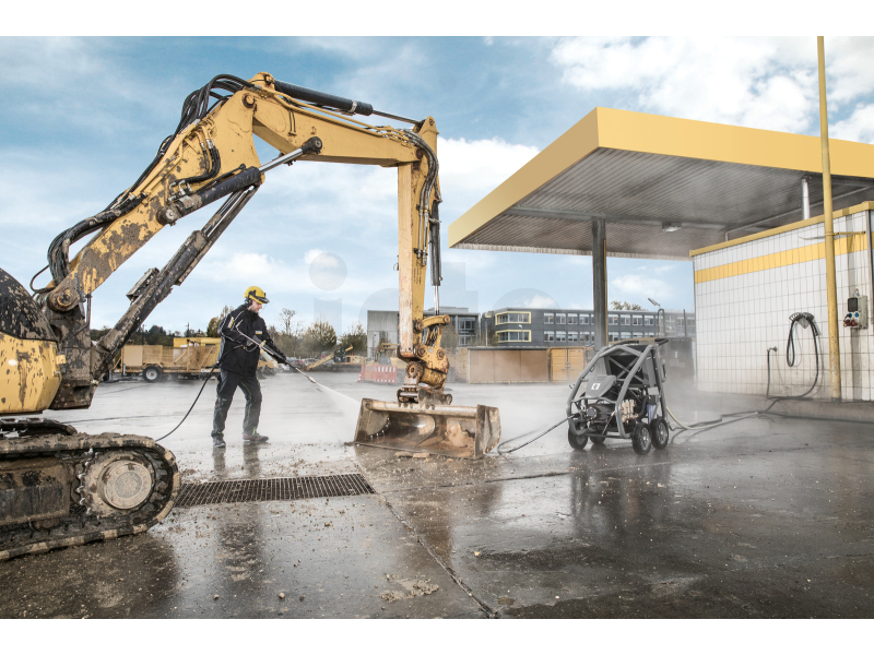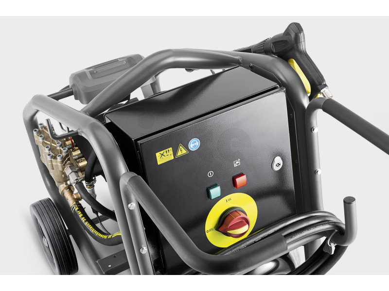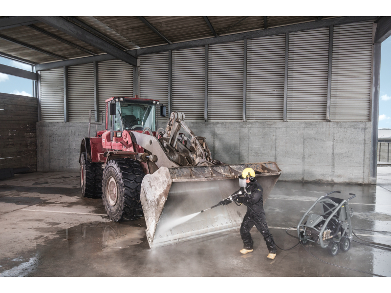 Díky extrémnímu výkonu a skvělému vybavení je náš mobilní vysokotlaký čistič HD 18/50-4 Cage Advanced z Kompaktní třídy UHP skutečným všeumělem pro nejrůznější použití v průmyslu, stavebnictví a dopravě. Pracovní tlak 500 bar, průtok 30 l/min a čisticí výkon až 30 kW spolehlivě odstraní i velké množství nečistot a silně ulpívající vrstvy. O jednoduchou a komfortní manipulaci se postará systém automatického snížení tlaku. Ventil sníží tlak v hadici, takže zůstane při zavřené pistoli flexibilní. Kromě toho se při otevírání pistole vytvoří tlak pomalu a tím se účinně zabrání zpětnému rázu. Jako jeden z nejlehčích vysokotlakých čističů své třídy přesvědčí HD 18/50-4 i maximální flexibilitou a mobilností. Mobilní Cage stroj je vybavený 4 velkými koly, hákem pro jeřáb pro přepravu i na špatně sjízdném terénu a lze ho navíc přepravit na požadované místo i vysokozdvižným vozíkem. Intuitivní přepínač umožňuje kromě toho mimořádně snadnou obsluhu stroje.