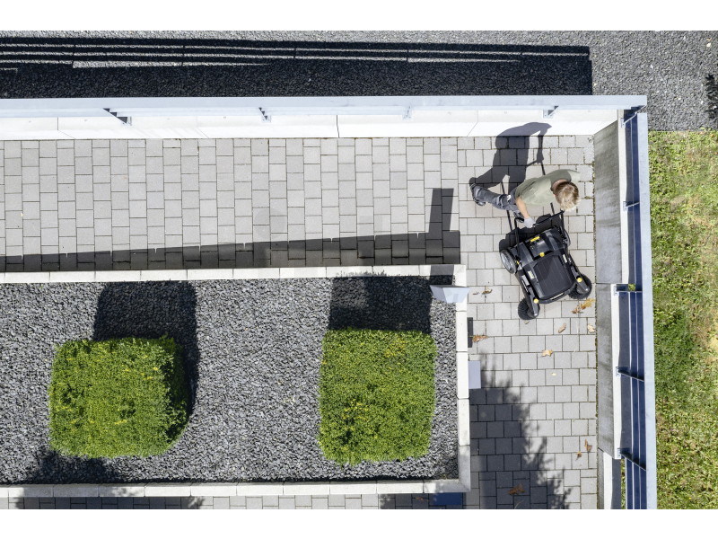 Díky prachovému filtru je zametání prakticky bezprašné, což přispívá k čistšímu prostředí. Plynule nastavitelný přítlak válce a bočních kartáčů umožňuje přizpůsobení čištění specifickým potřebám a zároveň snižuje opotřebení. Velká nádoba na nečistoty o objemu 20 litrů je vybavena ergonomickou rukojetí pro snadné vyprazdňování.